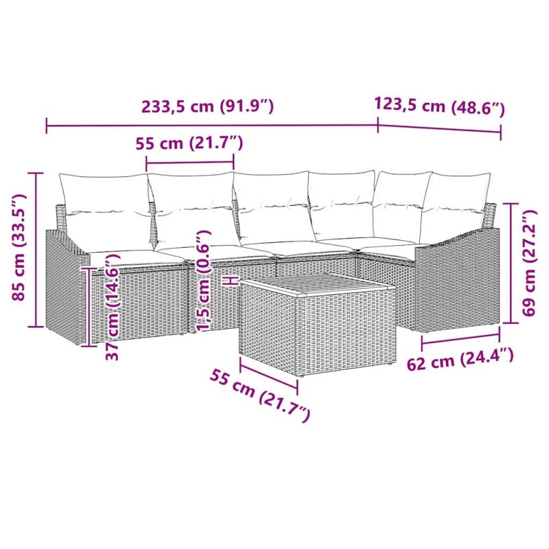 Градински Софа Комплект с възглавница 6 pcs Бежово Полиратан