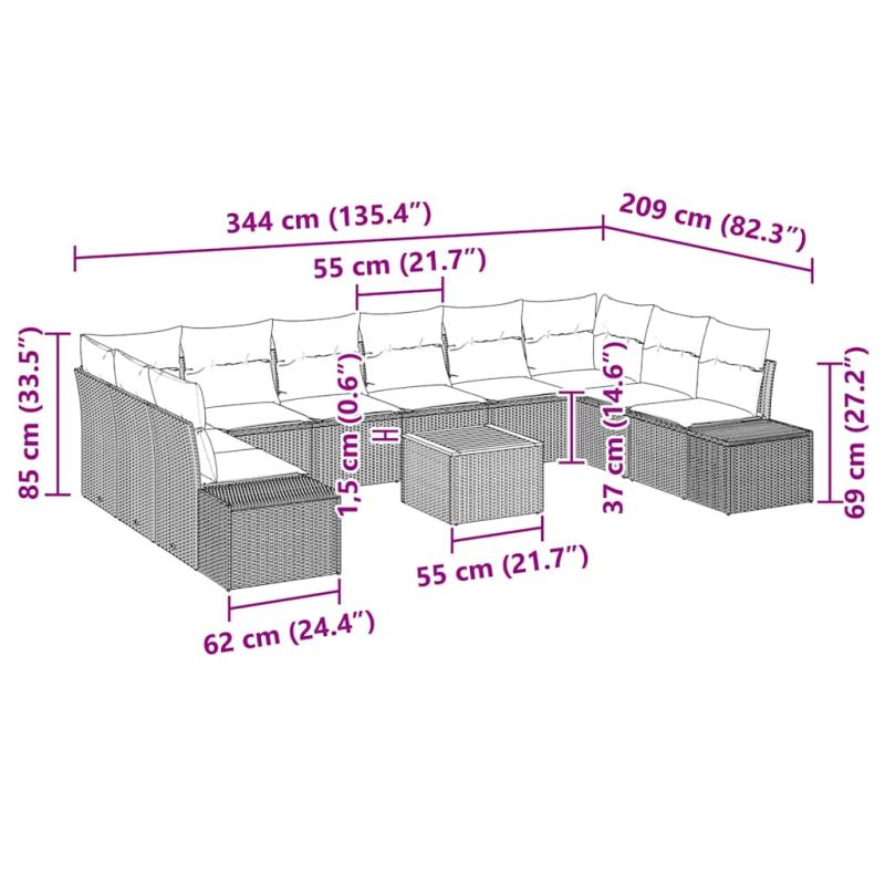 Градински Софа Комплект с възглавница 11 pcs Сив Полиратан