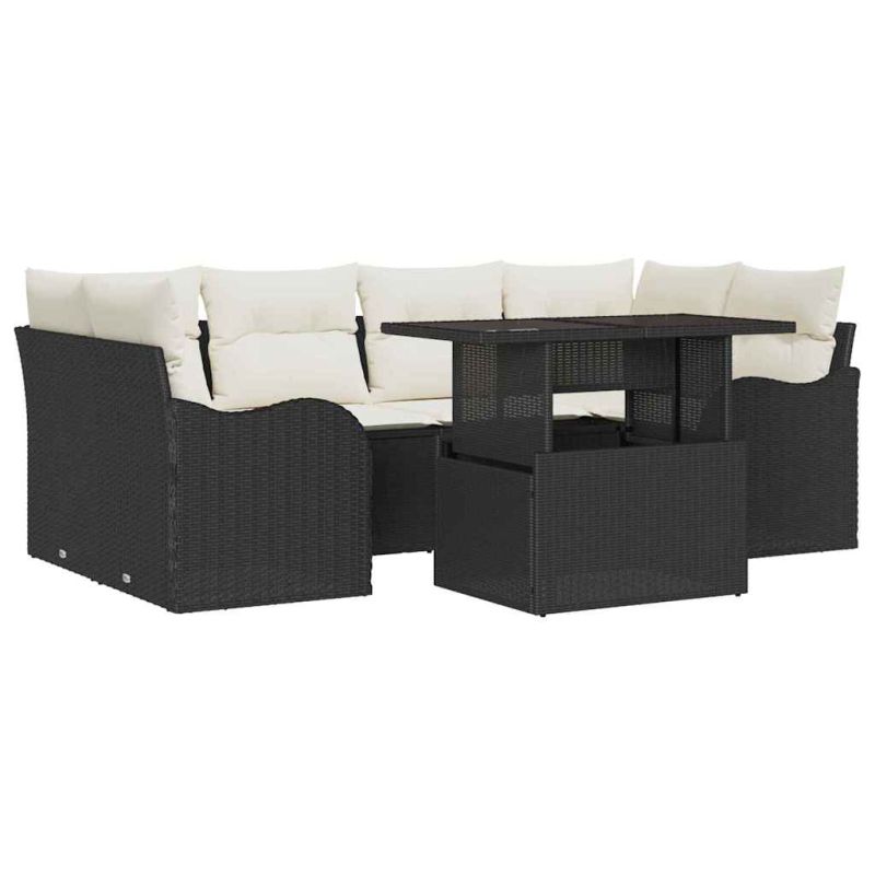 Градински Софа Комплект с възглавница 7 pcs Черно Полиратан
