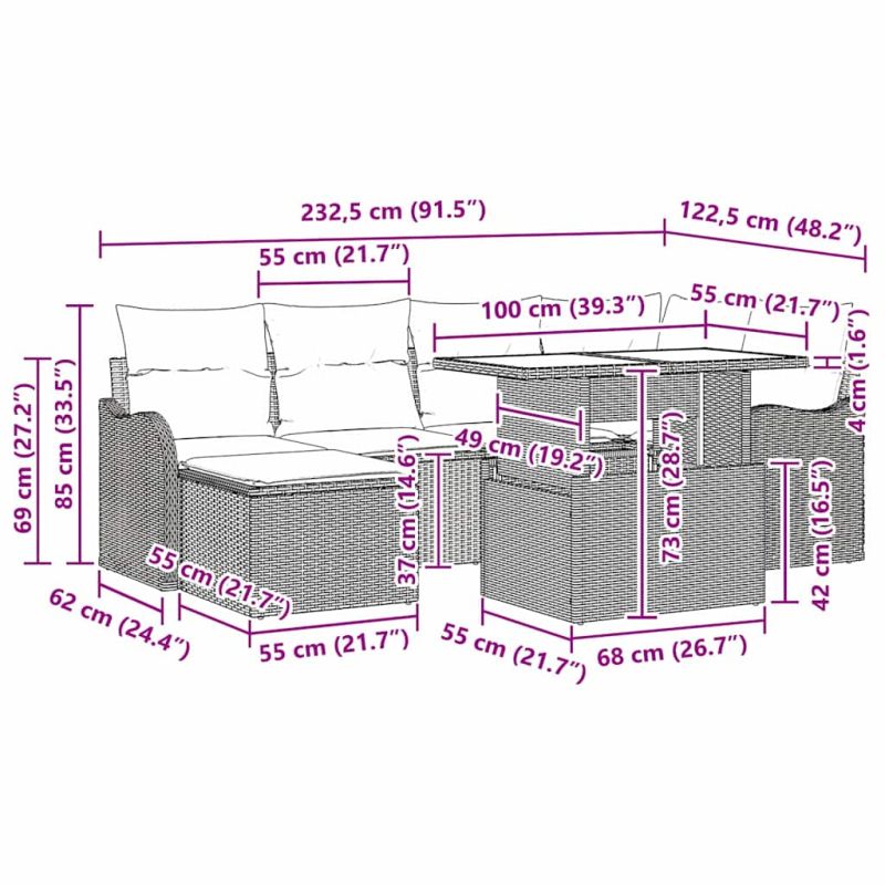 Градински Софа Комплект с възглавница 7 pcs Сив Полиратан