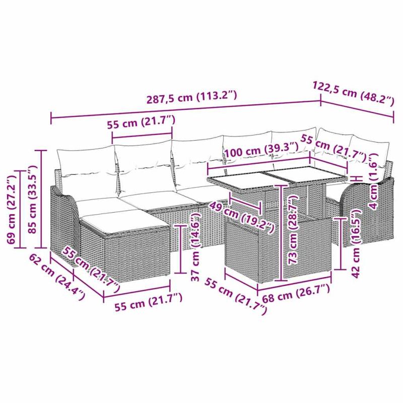 Градински Софа Комплект с възглавница 8 pcs Бежово Полиратан