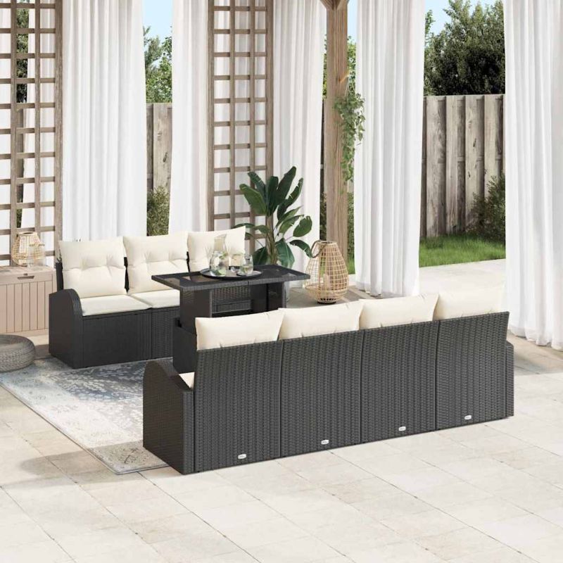 Градински Софа Комплект с възглавница 8 pcs Черно Полиратан