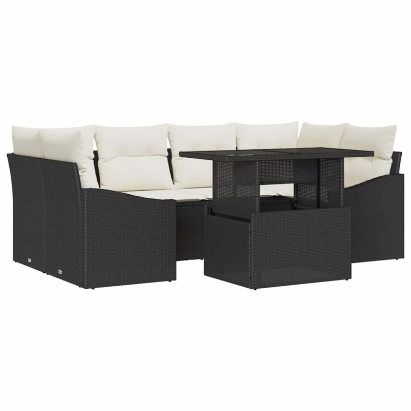 Градински Софа Комплект 7 pcs Черно и кремаво полиратан