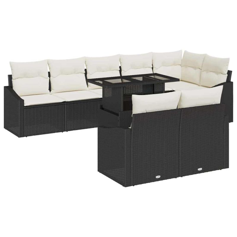 Градински Софа Комплект с възглавница 9 pcs Черно и кремаво