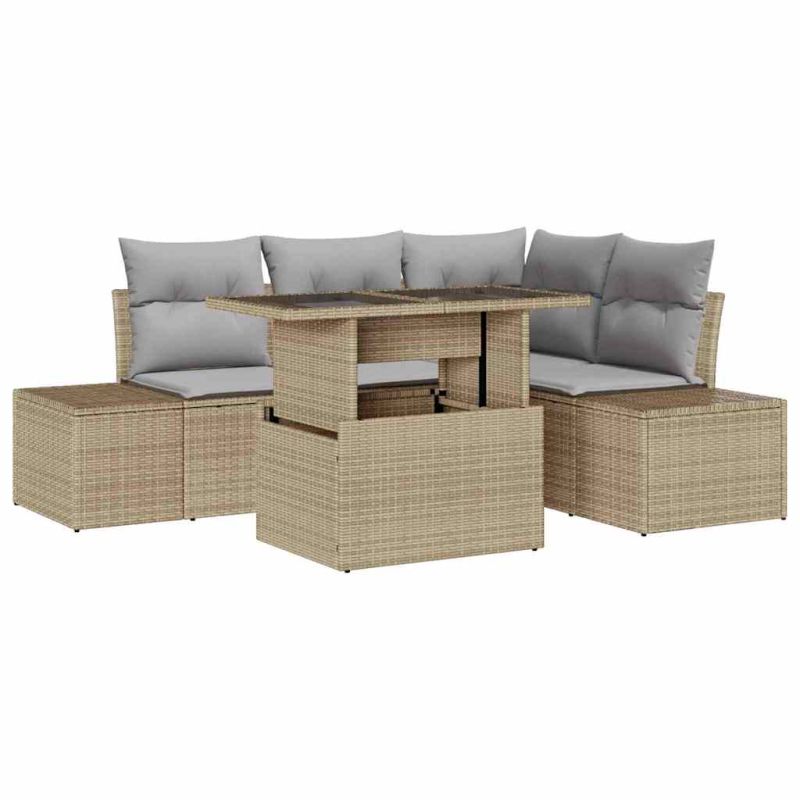 Градински Софа Комплект 5 pcs Бежов и Светло Сив полиратан