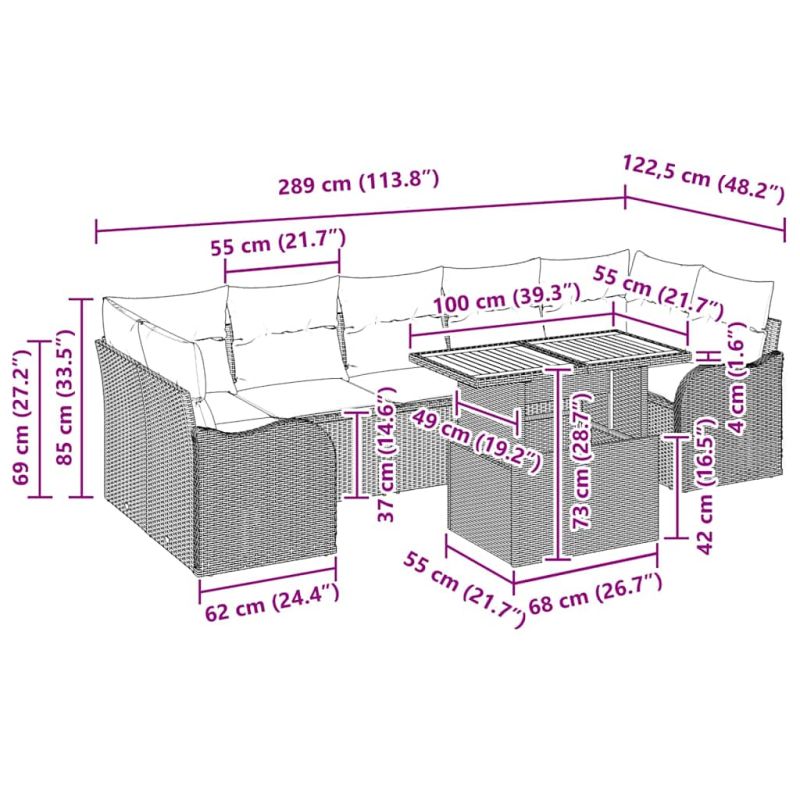 Този модулен комплект градински дивани превръща всяка градина или тераса в модерно outdoor пространство. Със стилен дизайн и адаптивни конфигурации, той е подходящ за всякакви поводи - от събирания до тихо релаксиране. Изработен от полиратан и акациево дърво, предлага красота и издръжливост, идеален за пролетни и летни мигове. Издръжлива конструкция: Направен от полиратан и масивно акациево дърво, този комплект градински дивани е проектиран да устои на времето. Полиратанът е устойчив на UV лъчи, а акациевата дървесина осигурява стабилност и елегантност. Модулен проект: С много части, комплектът позволява различни подредби. Хубав е за интимни събирания или неформални вечери, за лесно преоформление според нуждите. Конвертируема маса: Основната характеристика е височинно регулируемата маса, която става лесно от кафе-маса до трапезна. Тази функция добавя гъвкавост за всякакви случаи. Комфорно ориентирани компоненти: С деликатно извити подлакътници и удобно оформени седалки, комплектът осигурява приятно усещане дори при продължително сядане. Минимална поддръжка: С устойчиви на влага качества, просто покривай комплекта, когато не се ползва, за да запазиш красотата му.