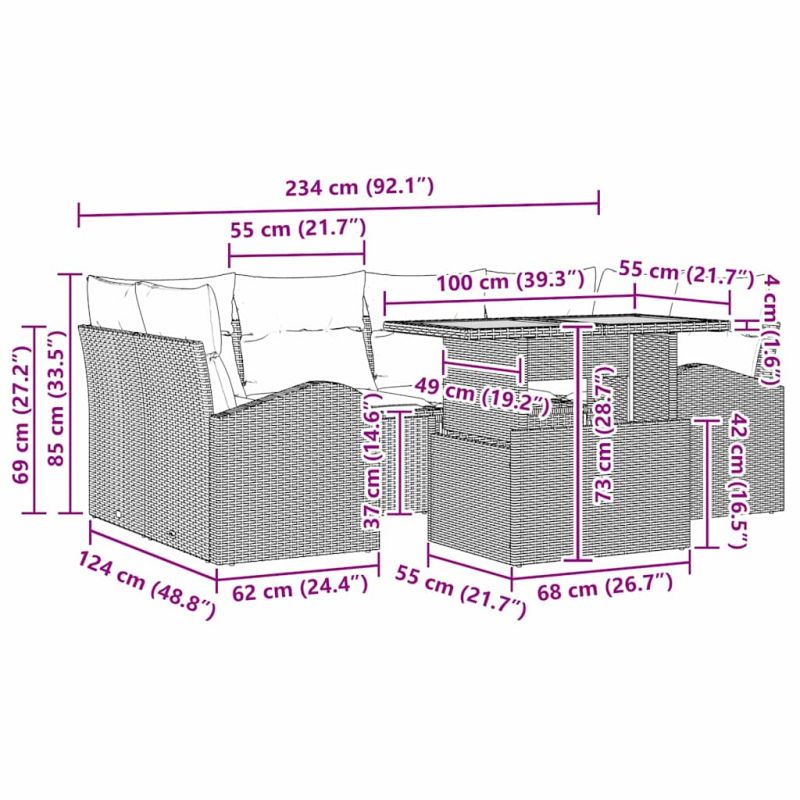 Градински Софа Комплект с възглавница 7 pcs Черно