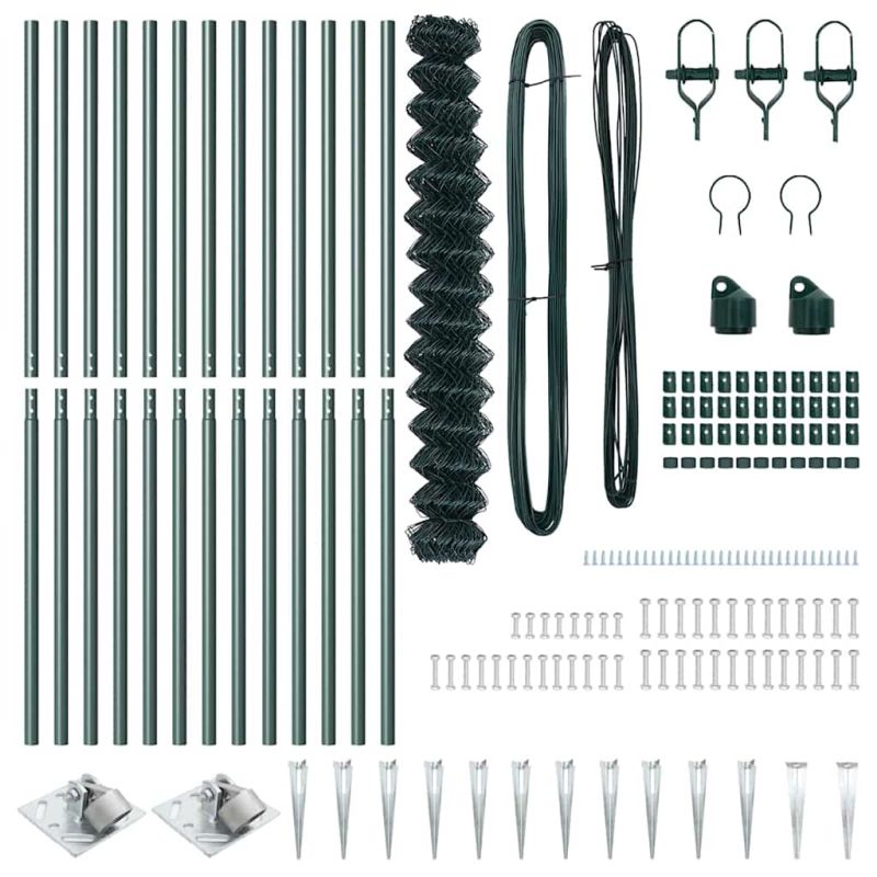Оградна верига с колони Зелен 1.6 x 25 m Стомана