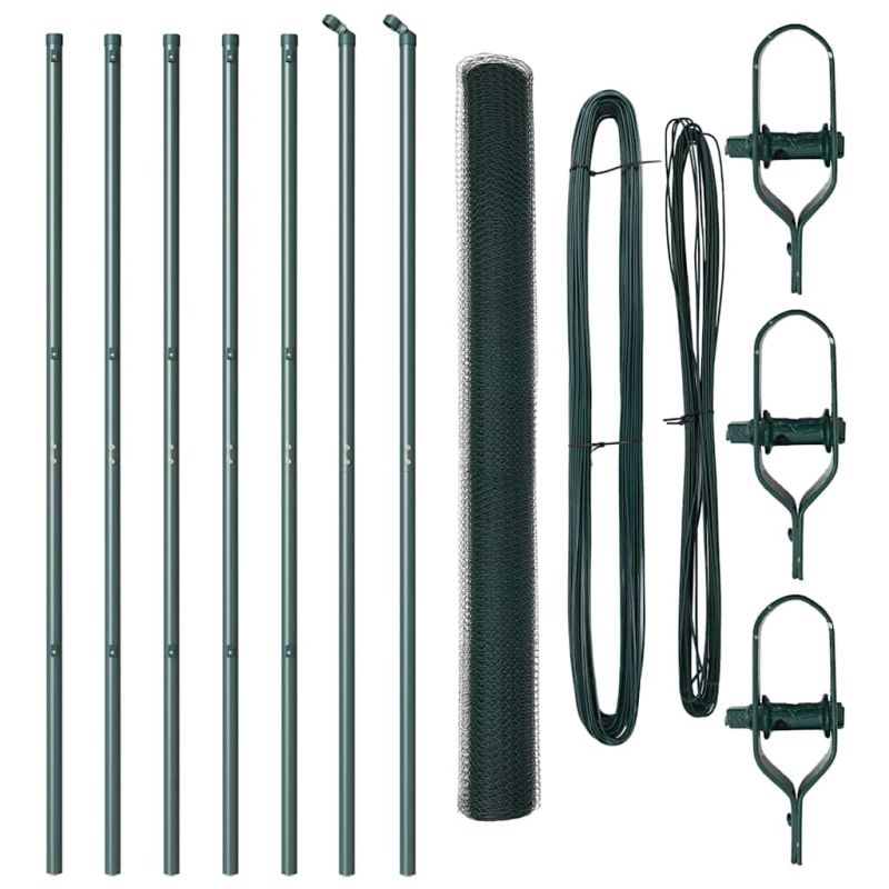 Оградa с колчета Зелен 1.5 x 10 m Покрит със PVC стомана