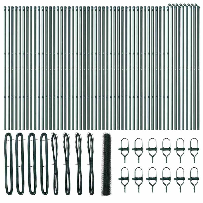 Стълб за ограда. Зелен 100 x 1 м (36 мм мрежа) Стомана и PVC