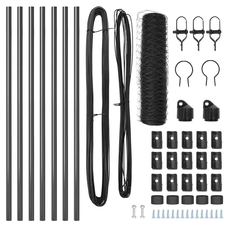 Стълб за ограда. Сив 10 x 0,5 м (36 мм мрежа) Стомана и PVC