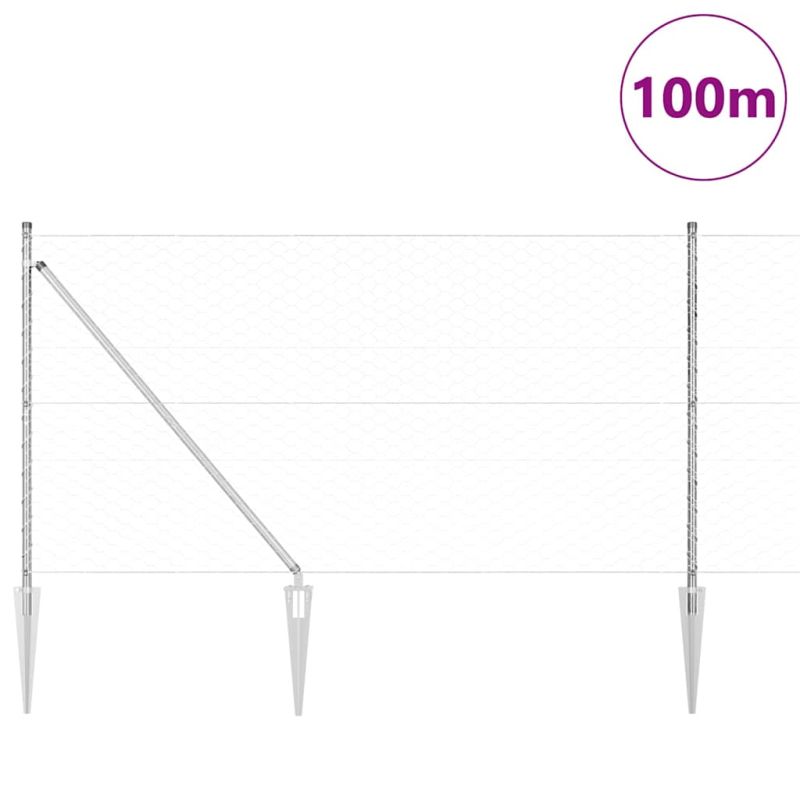 Оградa с колчета Сребрист 1.2 x 100 m Покрит със PVC стомана