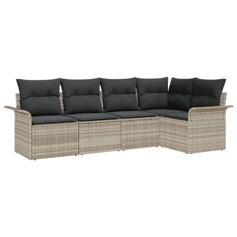 Градински Софа Комплект 5 pcs Светлосиво полиратан