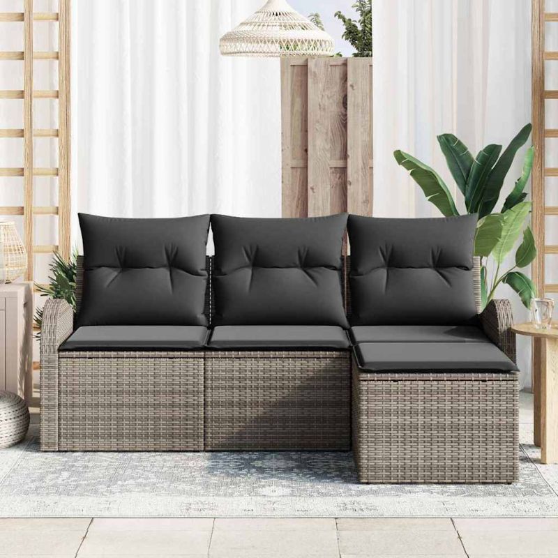 Комплект дивани с възглавница 4 pcs Сив полиратан