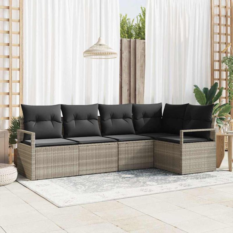 Градински Софа Комплект с възглавница 5 pcs Светлосиво