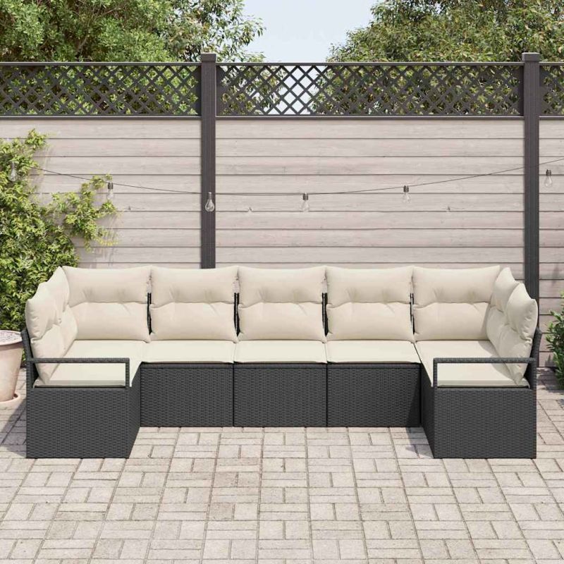 Градински Софа Комплект 7 pcs Черен и бял полиратан