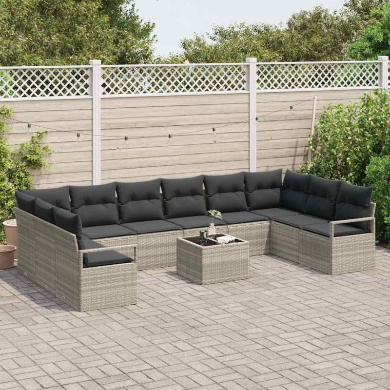 Комплект дивани с възглавница 11 pcs Светлосиво полиратан