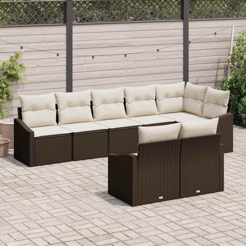 Градински Софа Комплект 8 pcs Кафяв и бял полиратан