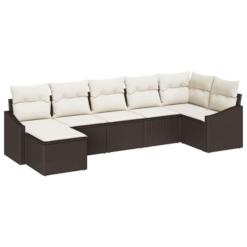 Градински Софа Комплект 7 pcs Кафяв и Кремав полиратан