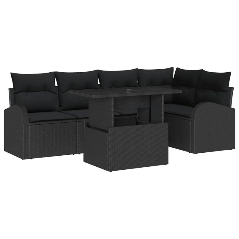 Градински Софа Комплект с възглавница 6 pcs Черно Полиратан