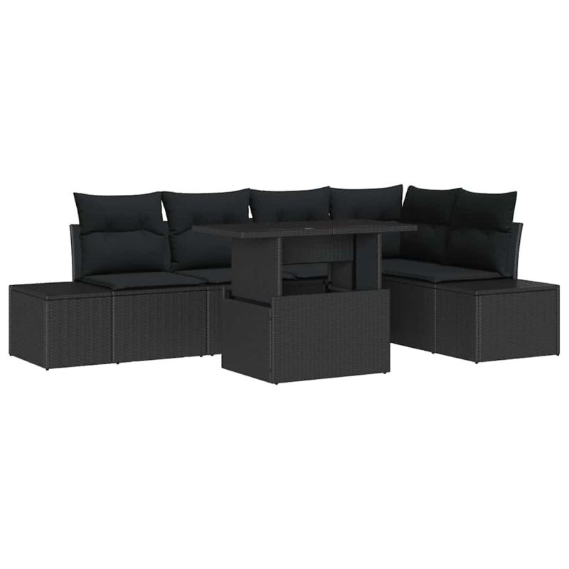 Градински Софа Комплект със съхранение 6 pcs Черно Полиратан