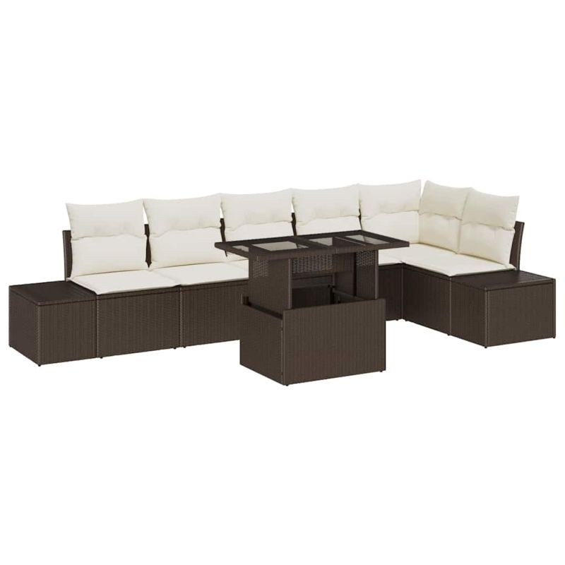 Градински Софа Комплект със съхранение 7 pcs Кафяво Полиратан