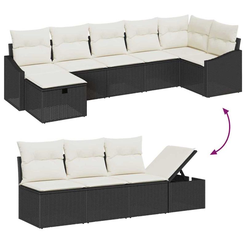 Градински Софа Комплект с възглавница 7 pcs Черно Полиратан