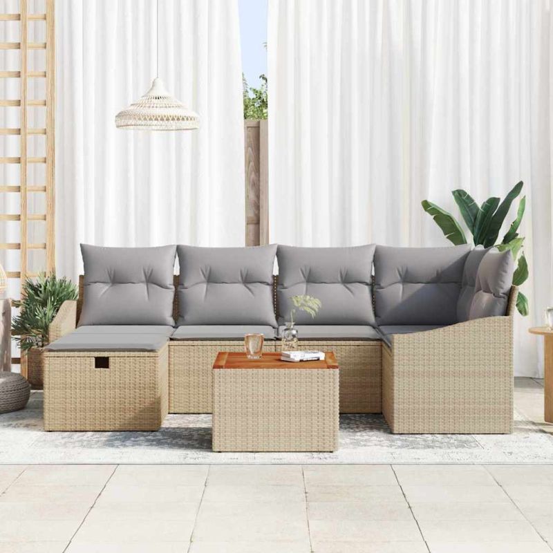 Градински Софа Комплект с възглавница 7 pcs Бежово Полиратан