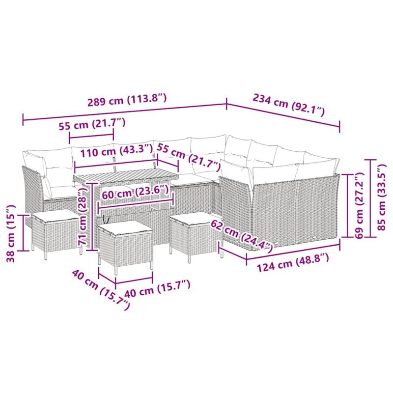 Градински Софа Комплект 13 pcs Бежово полиратан