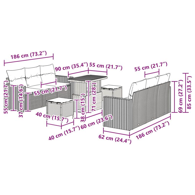 Градински Софа Комплект 9 pcs Черно полиратан