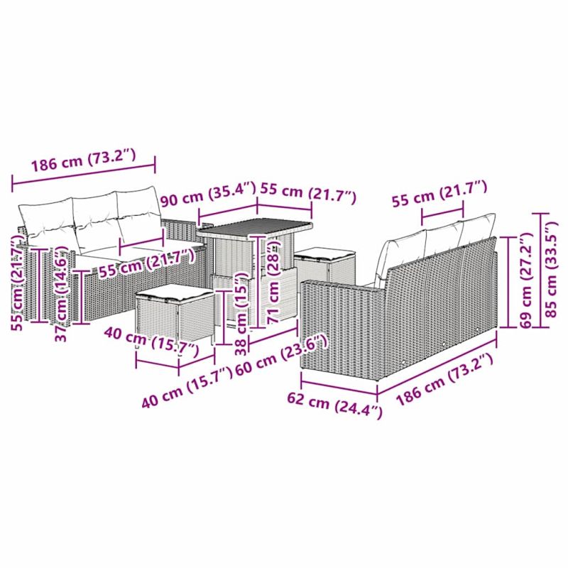 Градински Софа Комплект 9 pcs Сив полиратан