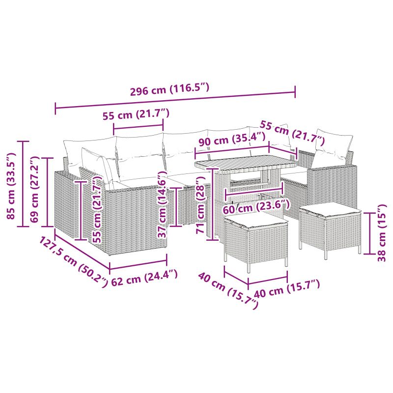 Този комплект градински дивани е супер модерен и елегантен, създаден за да се наслаждавате на открито през пролетта и лятото. Модулният му дизайн може да бъде настроен по ваш вкус, така че лесно да се впише в различни дворове и градини. Със свежия си стил и функционалност, той е идеален за събирания с приятели или просто за релаксиране. Комбинацията от полиратан и масивна акациева дървесина предлага уют и стил. Материали: Komбинация от полиратан и масивна акациева дървесина придава стил и издръжливост. Полиратанът е UV устойчив, така че цветовете му не изсветляват с времето, а акациевата дървесина добавя естествена текстура. Включени компоненти: Комплектът включва четири дивана с ръкохватки, три централни места, две табуретки и маса, което е достатъчно за комфортно седене и разпускане. Функции /Функционалност /Дизайн: Благодарение на модулния дизайн, можете да го конфигурирате каквото ви е удобно. Със здрава стоманена рамка, осигурява стабилност дори при честа употреба. Препоръчителни употреби: Идеален за градината, терасата или двора, позволява лесно адаптиране за всякакви събирания или за малко уединение. Стилните ръкохватки предлагат комфорт и се вписват в съвременния начин на живот. Поддръжка и опазване: За заздравяване на визията на комплекта, покривайте го, когато не го ползвате, за да го защитите от времето. Лесната поддръжка осигурява дълготрайност и запазва естетиката му.