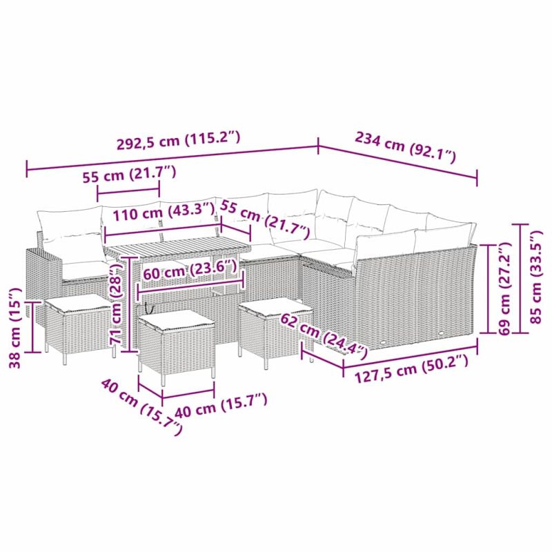 Градински Софа Комплект 13 pcs Бежово полиратан