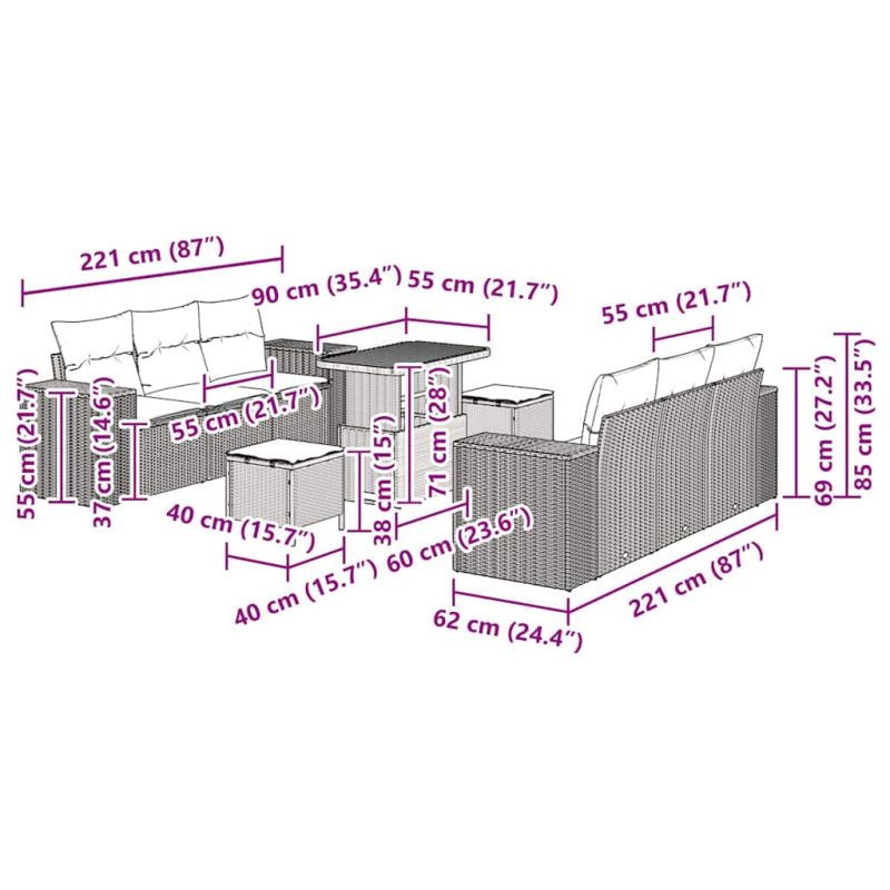 Градински Софа Комплект със съхранение 9 pcs Сив Полиратан