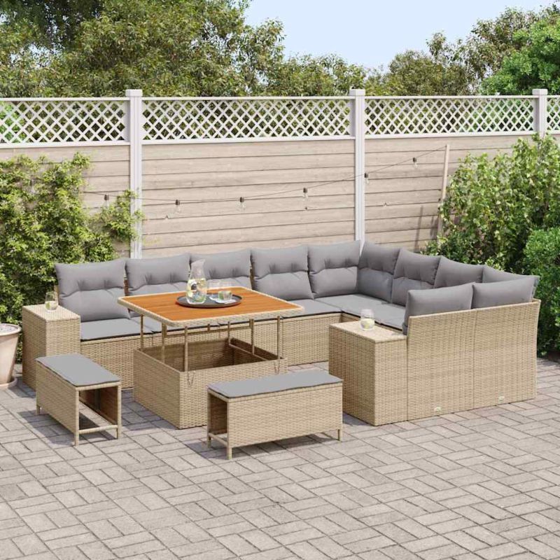 Градински Софа Комплект с възглавница 12 pcs Бежово полиратан