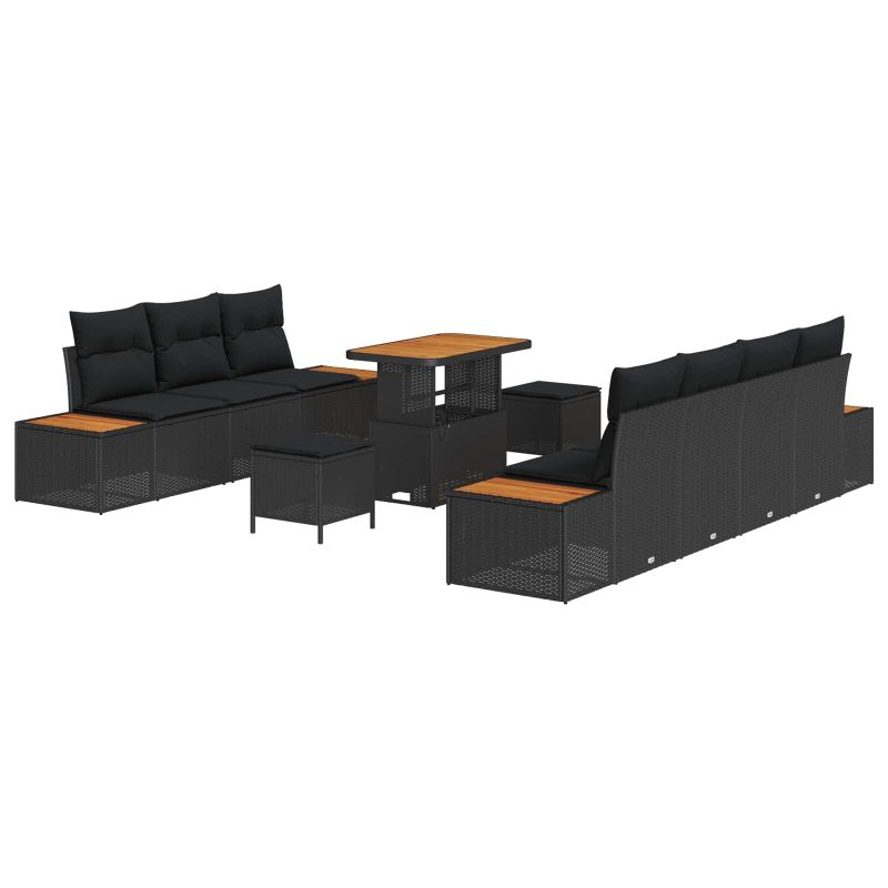 Градински Софа Комплект с възглавница 10 pcs Черно Полиратан