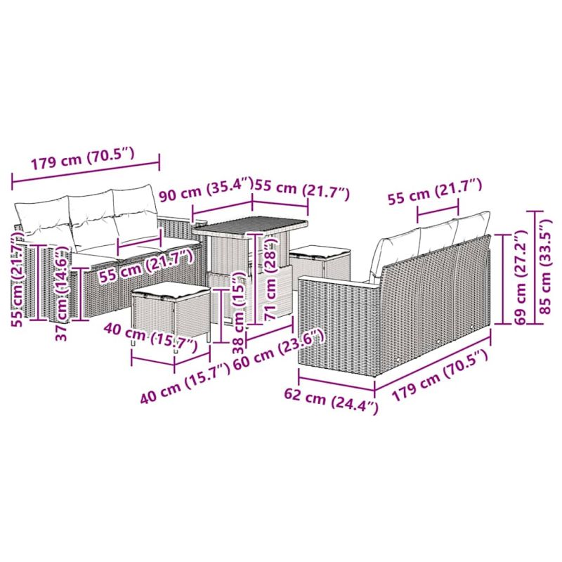 Градински Софа Комплект 9 pcs Бежово полиратан