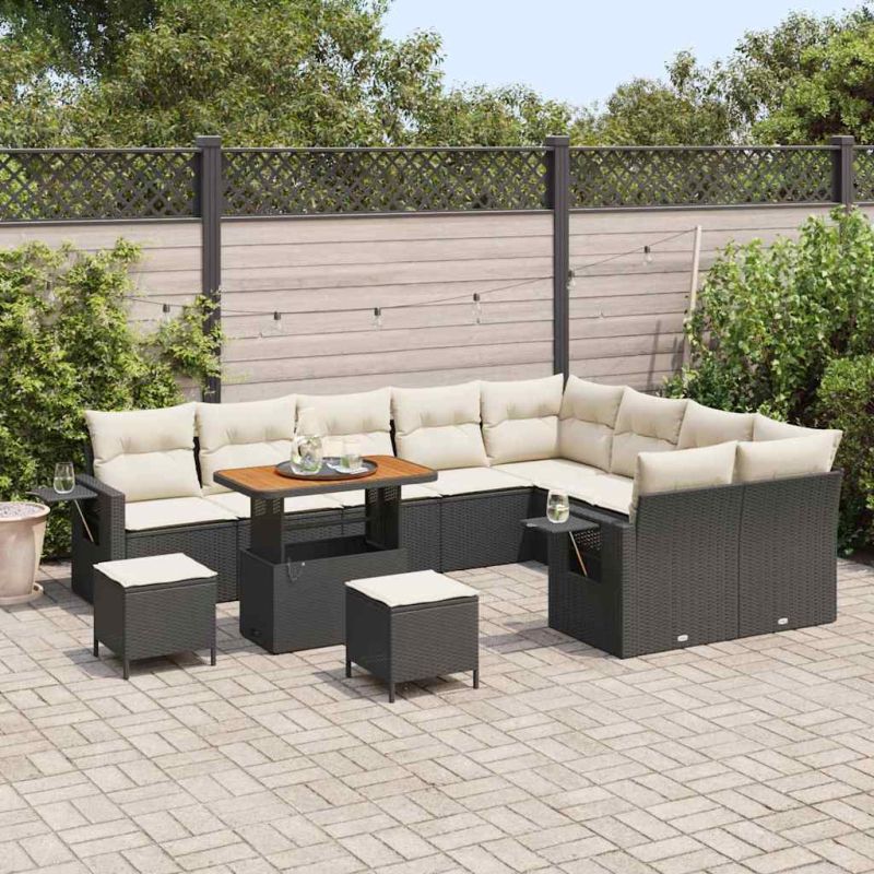 Градински Софа Комплект с възглавница 12 pcs Черно и кремаво