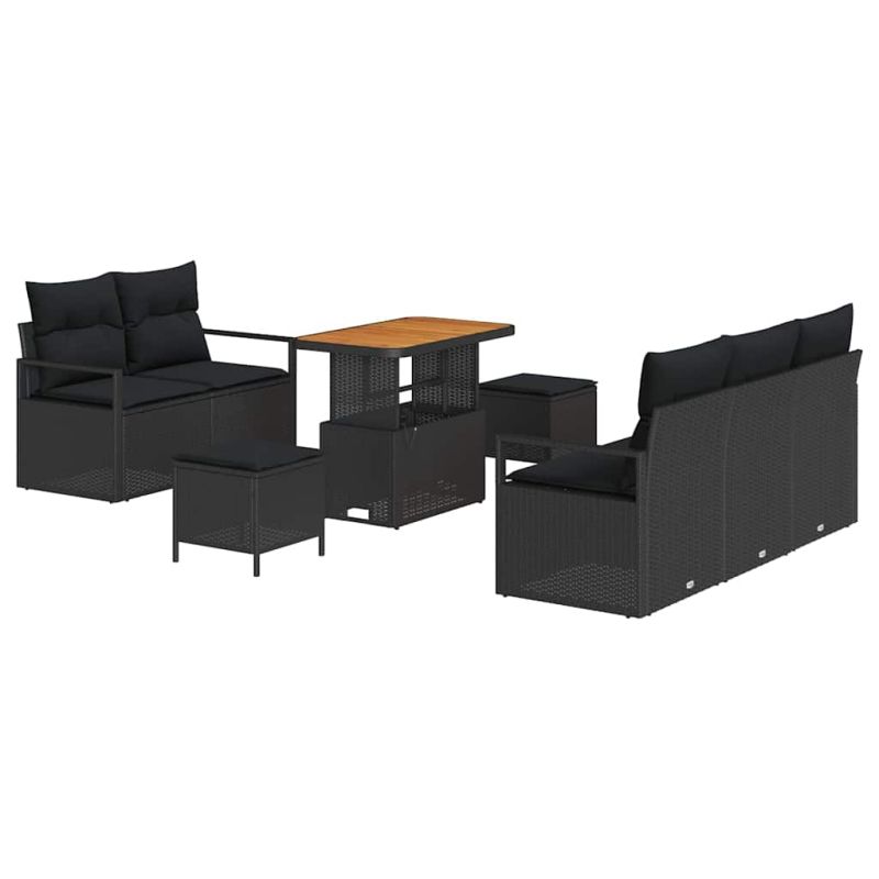 Градински Софа Комплект с възглавница с възглавница 8 pcs Черно