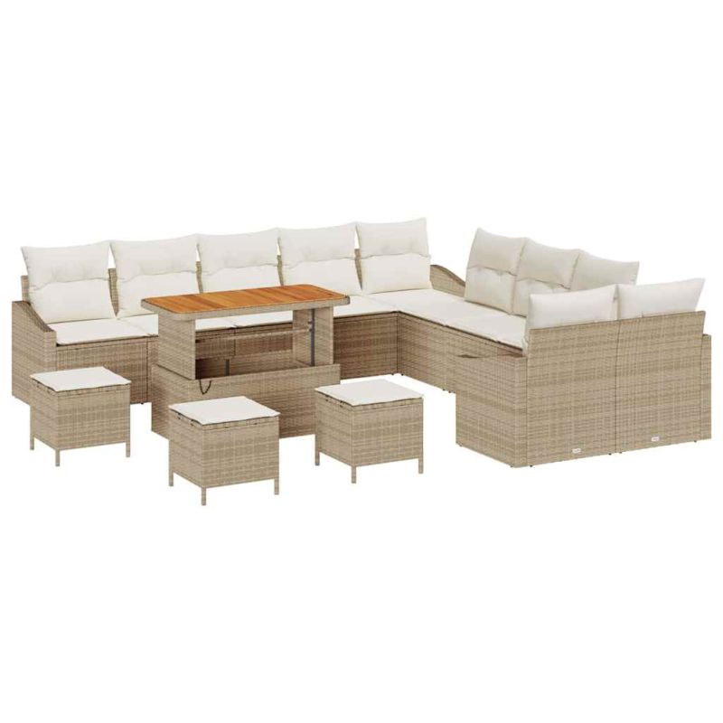 Градински Софа Комплект с възглавница 13 pcs Бежово Полиратан