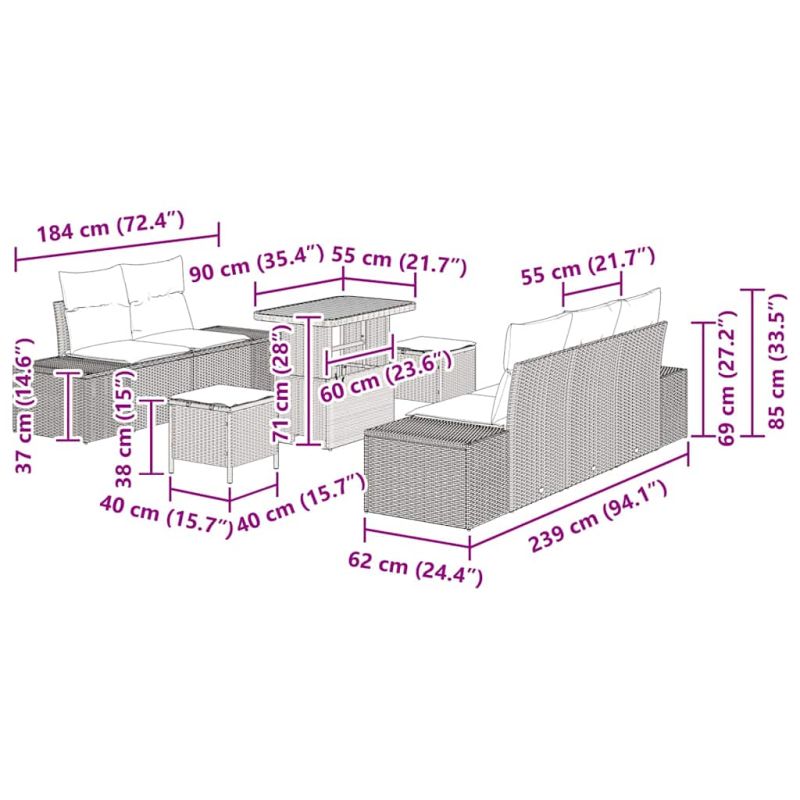 Градински Софа Комплект с възглавница 8 pcs Бежово Полиратан
