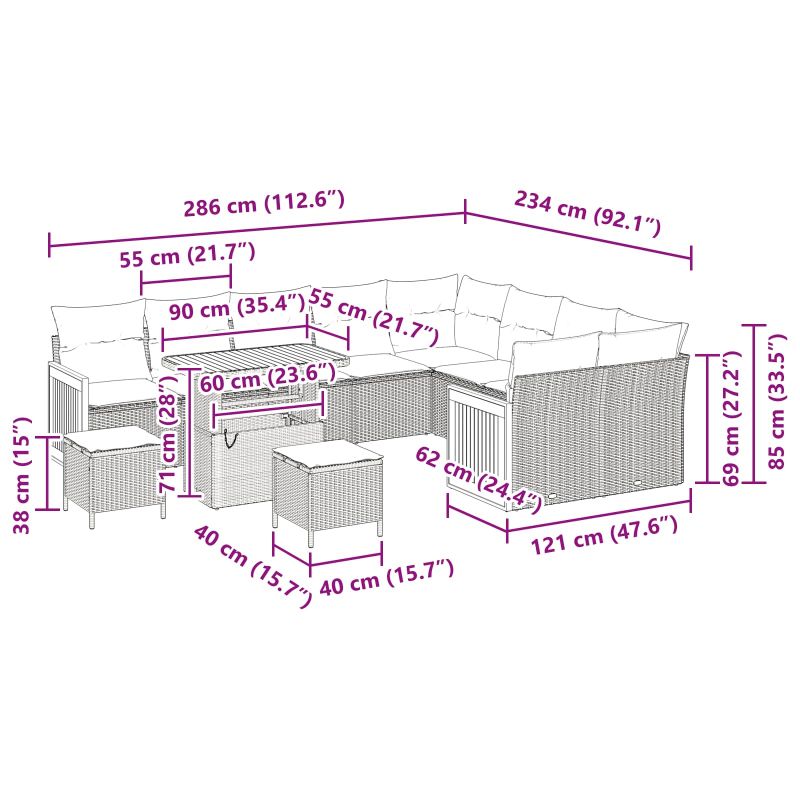 Градински Софа Комплект с възглавница 13 pcs Черно полиратан