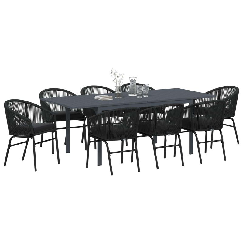 Този модерен комплект за хранене на открито съчетава елегантност и удобство, перфектен за малки семейни сбирки или големи социални събития. С чистите си линии и минималистичен стил, той е както практичен, така и стилен акцент за всяка градина или тераса, придавайки поканваща, модерна атмосфера, пълна с чар и полезност. Уникален материал Този комплект за хранене е направен от прахово боядисана стомана и полиратан, осигурявайки стилен вид и дълготрайност. Материалите са устойчиви на лоши условия на времето, запазващи външния вид целогодишно. Пълен комплект с компоненти Включва голяма разширяема маса и осем удобни стола, които правят социалните събирания стилни и комфортни. Столовете имат подлъцеви облегалки и подлакътници с подвижни седалки, което улеснява обслужването и добавя комфорт. Функционален дизайн Проектиран за многофункционалност, комплектът включва разширяема маса, която създава допълнително място, когато е необходимо, така че да е подходяща за всякакви поводи. Всеки компонент подчертава стилността и удобството. Многофункционална употреба Перфектен за всякакви градински събирания, този комплект е идеален за вечери или просто да се наслаждаваш на неформални хранения на открито. Лесно се вписва в различни открити пространства, увеличавайки естетиката на градината или терасата. Лесна поддръжка За да запазиш комплекта в перфектно състояние, просто го покривай, когато не го ползваш. Това помага за лесна и дълготрайна поддръжка, минимизирайки усилията и осигурявайки винаги добро впечатление.