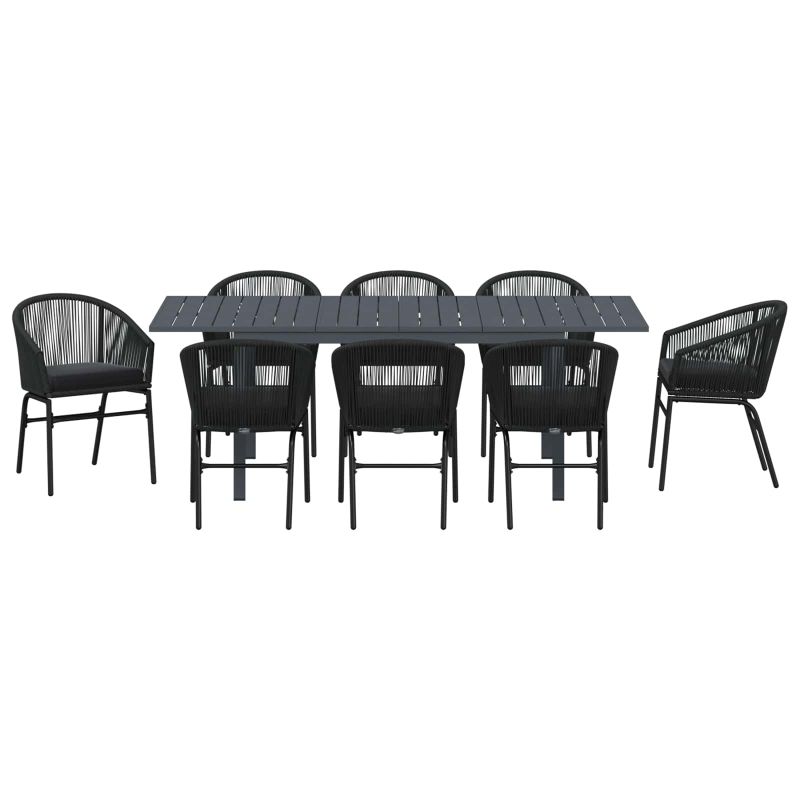 Комплект за хранене в градината 9 pcs Черно полиратан