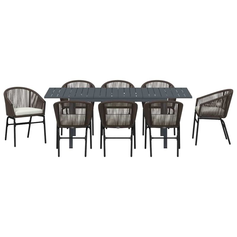 Този модерен комплект за хранене на открито съчетава елегантност и удобство, перфектен за малки семейни сбирки или големи социални събития. С чистите си линии и минималистичен стил, той е както практичен, така и стилен акцент за всяка градина или тераса, придавайки поканваща, модерна атмосфера, пълна с чар и полезност. Уникален материал Този комплект за хранене е направен от прахово боядисана стомана и полиратан, осигурявайки стилен вид и дълготрайност. Материалите са устойчиви на лоши условия на времето, запазващи външния вид целогодишно. Пълен комплект с компоненти Включва голяма разширяема маса и осем удобни стола, които правят социалните събирания стилни и комфортни. Столовете имат подлъцеви облегалки и подлакътници с подвижни седалки, което улеснява обслужването и добавя комфорт. Функционален дизайн Проектиран за многофункционалност, комплектът включва разширяема маса, която създава допълнително място, когато е необходимо, така че да е подходяща за всякакви поводи. Всеки компонент подчертава стилността и удобството. Многофункционална употреба Перфектен за всякакви градински събирания, този комплект е идеален за вечери или просто да се наслаждаваш на неформални хранения на открито. Лесно се вписва в различни открити пространства, увеличавайки естетиката на градината или терасата. Лесна поддръжка За да запазиш комплекта в перфектно състояние, просто го покривай, когато не го ползваш. Това помага за лесна и дълготрайна поддръжка, минимизирайки усилията и осигурявайки винаги добро впечатление.