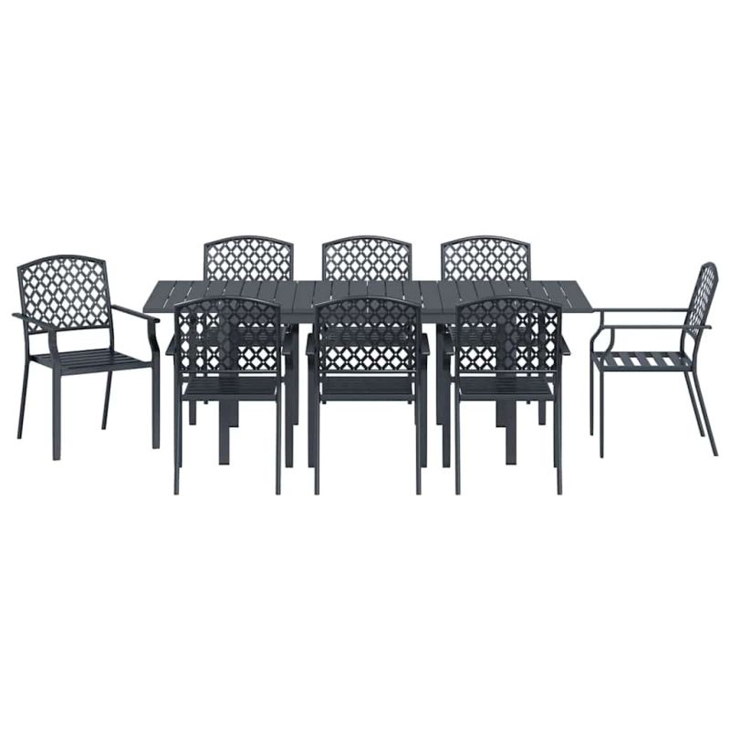 Модерният градински сет е супер допълнение към твоето открито пространство, предлагащ елегантна и модерна атмосфера – идеална за топли събирания или спокойни вечери навън. С минималистичната си форма и модерен антрацитен цвят, той добавя стилен акцент срещу зеленината на всяка градина или тераса. Умният му дизайн помага на хората да се чувстват свързани с природата, правейки храненето на открито истинско удоволствие. Здрава стоманена конструкция Изработен изцяло от здрава стомана, обещава дълготрайна издръжливост и е перфектен за употреба на открито. Антрацитният цвят го прави още по-устойчив на влиянията на времето, така че ще изглежда яко през всички сезони. Гъвкави опции за хранене Разтегателната маса означава, че можеш лесно да я настроиш за всичко - от малки вечери до големи събирания. Отличен начин да адаптираш пространството си за хранене без усилия. Удобни подлакътници Стоманените подлакътници дават стил и добра опора, осигурявайки комфортно сядане за дълги хранения. Простият, но здрав дизайн подчертава модерния стил на целия комплект. Солидни крака Здравите крака предлагат стабилна опора и сигурност. Не само, че изглеждат добре, но и са важни, за да стои градинският сет стабилно с времето. Лесна поддръжка За да го поддържаш в отлично състояние, е най-добре да ползваш покривало, когато не се използва, за да го пазиш от лошото време. Тази лесна поддръжка прави комплекта ти страхотен без много усилия. Максимално 110 кг на седалка.