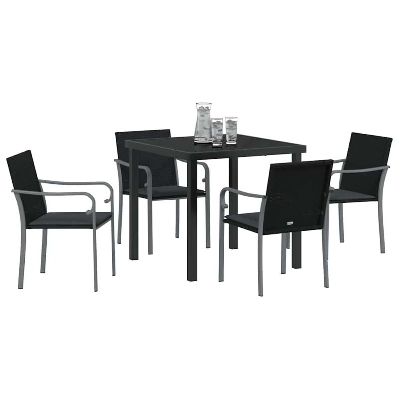 Комплект за хранене в градината 5 pcs Черно Полиратан