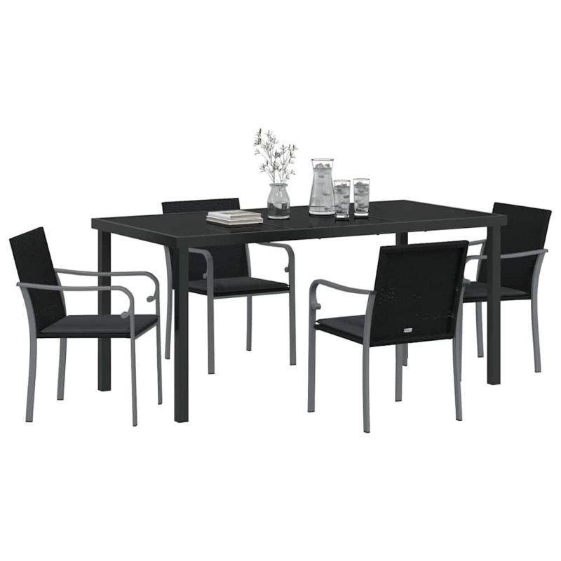Комплект за хранене в градината 5 pcs Черно Полиратан