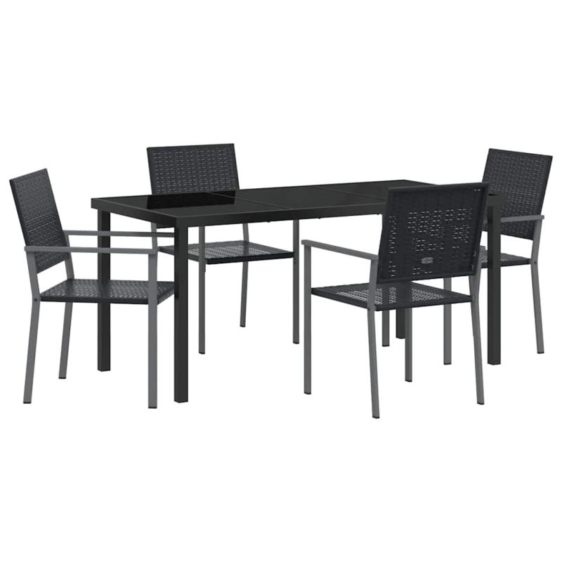 Комплект за хранене в градината 5 pcs Черно Полиратан