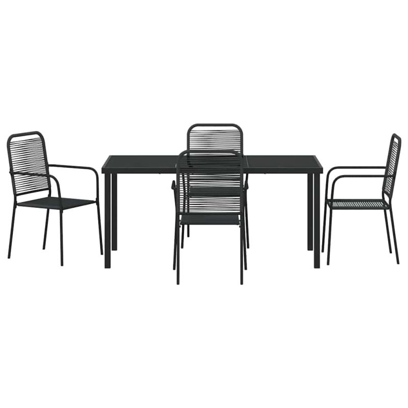 Този модерен комплект за хранене в градината е истински символ на шикозния стил, идеален за всичките ви нужди на открито. С елегантният си вид, той се съчетава прекрасно с всяка градина или тераса. Идеален за летни събирания, този комплект комбинира стил и практичност, което го прави популярен сред семействата, приятелите и любителите на открито. Изработен, за да устоява на времето, изглежда перфектно сезон след сезон, превръщайки всяко открито пространство в уютно място. Без значение дали правите барбекю или се наслаждавате на тихо ястие, този комплект създава незабравима обстановка. Комбинация от материали: Изработен от памучна връв и прахово боядисана стомана, този комплект за хранене предоставя стилен баланс между естетика и здравина. Памукът придава мек вид, докато е здрав за ежедневно ползване; стоманата осигурява дълготрайност, което го прави надежден избор за откритите пространства. Компоненти: Комплектът включва правоъгълна маса с горна част от закалено стъкло, устойчива на елементи. Прахово боядисаните стоманени подлакътници и рамка осигуряват стабилна поддръжка, а елегантните крака я държат здраво на всяка повърхност. Функционален дизайн: С UV устойчиви материали, този комплект може да се справи с солнце и дъжд, осигурявайки ви спокойствие при дълги занимания на открито. Непрозрачният дизайн създава уютна обстановка за хранене, идеална за вашата тераса или градина. Универсална употреба: Проектиран за забавления на открито, комплектът е идеален за летни събирания и барбекюта, създавайки приветлива зона за хранене, подходяща както за ежедневни ястия, така и за специални поводи. Съвети за поддръжка: Запазете го свеж с покривало за мебели, когато не се използва. Лесното почистване и съхранението на закрито при лошо време помогат за запазването на хубавия му вид. Максимално 110 кг на седалка.